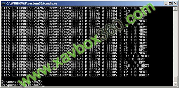 Une fois le hash complet trouvé (environ 1 heure), la console démarre (avec le rod !)
