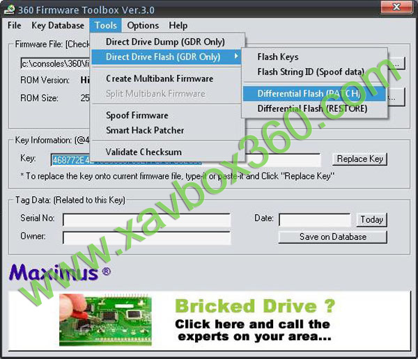 dans la barre du menu allez dans Tools et choisissez Direct Drive Flash (Gdr Only) -> Differential Flash (PATCH). Figure 19